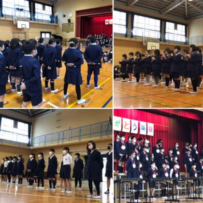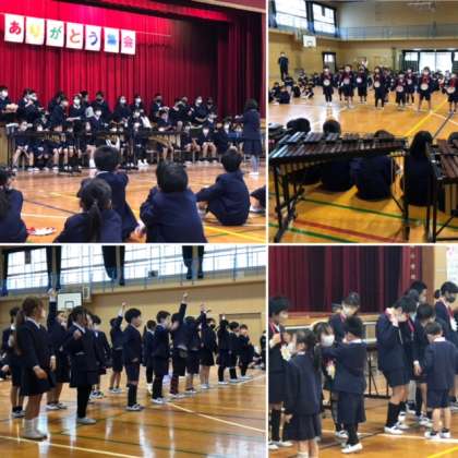 リーダーと過ごす時間もあとわずかです。1〜5年生のみなさんから、歌や演奏、よびかけなどで「ありがとう」の気持ちをリーダーに伝えました。メダルや色紙などのプレゼント交換もしました。