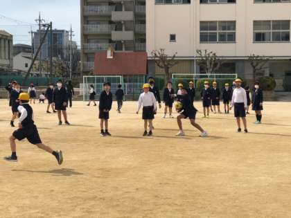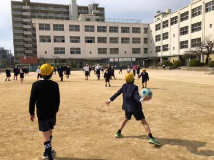 ポカポカ陽気の昼休みの運動場では、熱いバトルが始まりました!