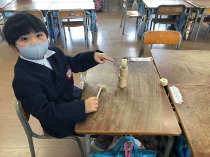 「見てみて!」と元気な声に誘われて、教室に引き込まれました。私もチャレンジしました!がなかなか上手くはできませんね!それでもみんなの笑顔がたくさん見られてうれしかったです!