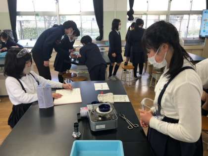 子どもたちは水溶液の蒸発について学んでいます。今日の実験は「食塩水」と「ミョウバン」の蒸発実験です!