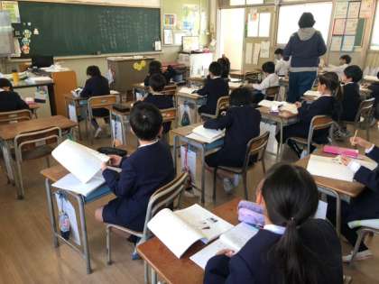 文章の内容と自分の体験を結びつけて考えて、考えたことを文章にまとめていきます。この単元を通して、「文章と知っていることを結びつけて感想を持つ力」をつけることをめざします!学年の締めくくりとして成長した姿を見せる子どもたちです!