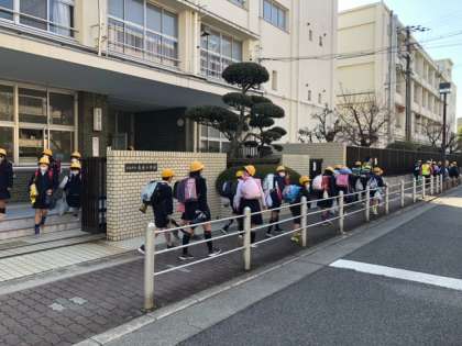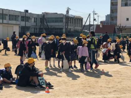今年度最後の地区別集団下校でした。まずは各教室に集まり、次年度への引き継ぎの確認をしました。その後、グランドに集合しました。ここからはサブリーダーが先頭になり、来週からの登校班をリードします。もしもの時には、こうしてみんなで安全確認をして帰宅することがあります。その時のために、できることをみんなで確かめ合いました。