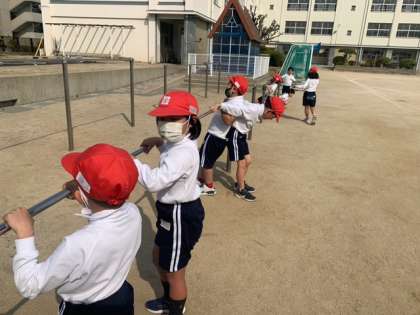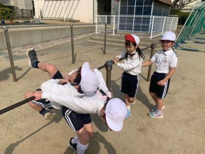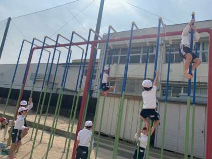 子どもたちは久しぶりの登り棒と鉄棒にチャレンジしました。鉄棒は逆上がりができた人が、できない人のサポートをしていました。学び合う子どもたちに拍手です!