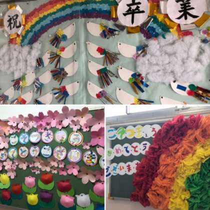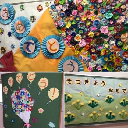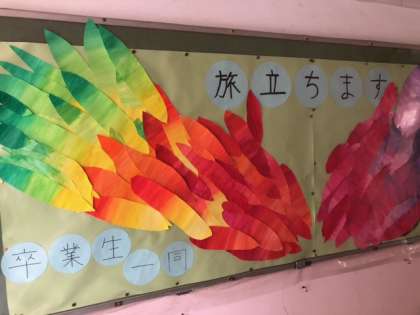 今週末の17日(金)は卒業式です。校内のあちこちに、リーダーに向けてのメッセージ作品が飾られています。みんなの温かい想いがリーダーに届いています。ありがとう!