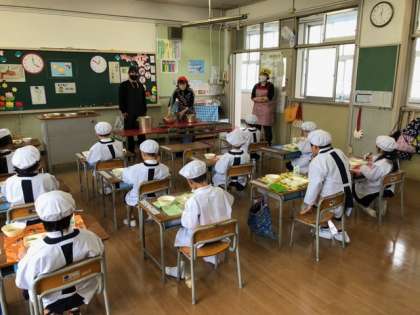 子どもたちは給食の時間もみんなの力をひとつにします。なかでも給食には、長原小学校のリーダーがお手伝いします。