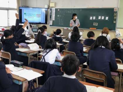 元気よく手をあげる姿がとてもステキでした。先生の元気な声にも教室が活気に満ちていました。