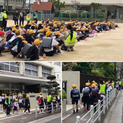 運動場では、もしもの時にはこうして集まり、自分の命やとなりの人の命を守ることを確かめ合いました。