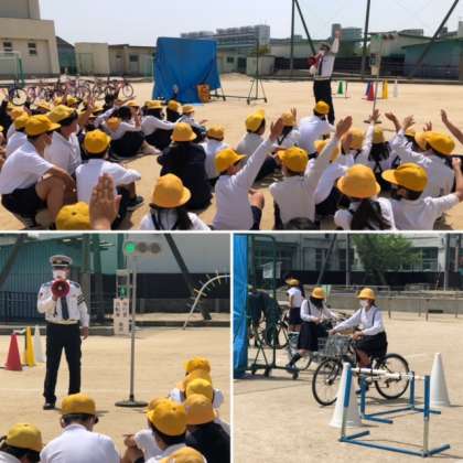 ヘルメットの装着が努力義務化されたことを受け、警察の方からお話がありました。「ヘルメットしてる人?」と聞くと、手を挙げる人は0人!「今は違反ではないですが、みなさんの頭を守る大切なものですので、できるだけ着用するように!」とアドバイスをもらいました。