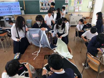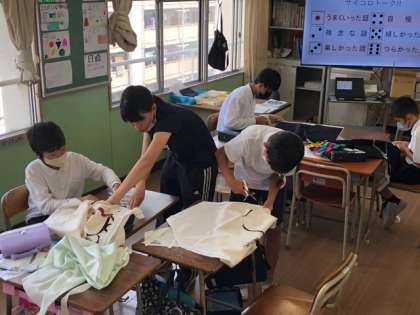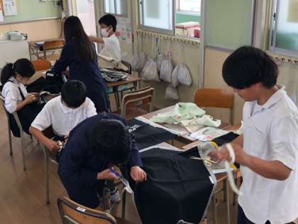 子どもたちはエプロンづくりにチャレンジしています。