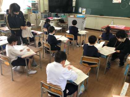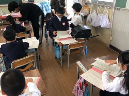 子どもたちは、プリントファイルを使って、いろんなプリントの整理をしています。はじめはフックを上手く取り外しできなかった子どもも、慣れてきたのか上手くできるようになってきました。