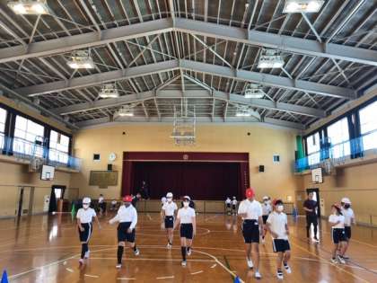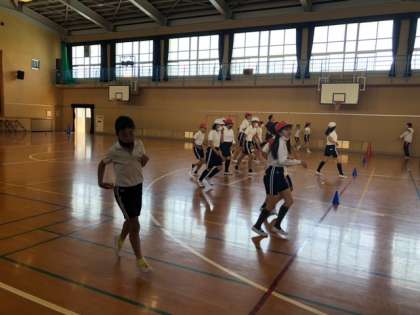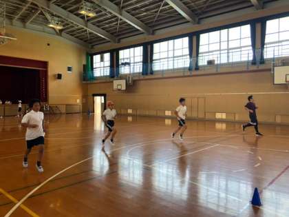 子どもたちは体育館でシャトルランにチャレンジしていました。