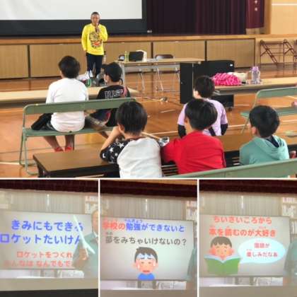子どもの頃の自分は夢を持っても、まわりから批判され、あきらめさせられる。そんな中、祖母が「好きなことをとことんしなさい」と励まされ、夢に向かう自分を追い求め、今の自分があるとご自身を振り返り、子どもたちにメッセージを伝えます。
