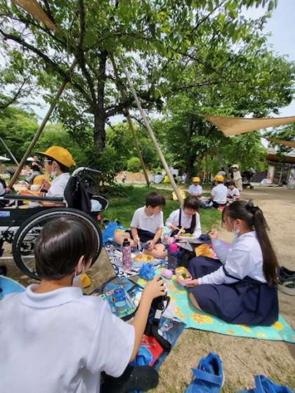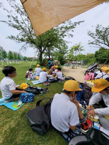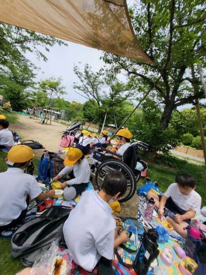 快晴の空の下、楽しい時間を過ごしています!ご家庭のみなさま!お弁当をありがとうございました。