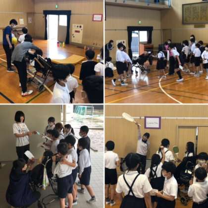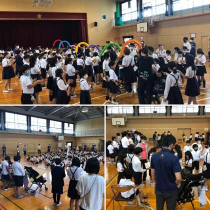 4年ぶりの「長原ふれあい広場」が開かれました。計画委員会が中心となり、支援学校の子どもたちと本校の子どもたちが集い、各アクティビティー(おおなわくぐり・わなげ・イントロクイズ・ダンス・じゃんけん・ボーリング)をチームごとに回りました。