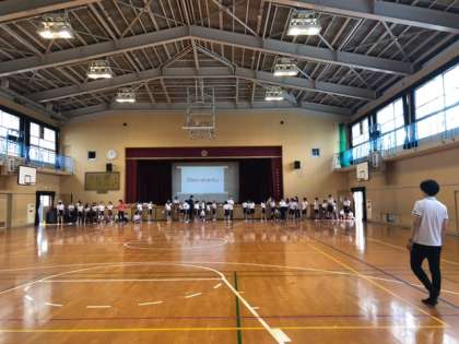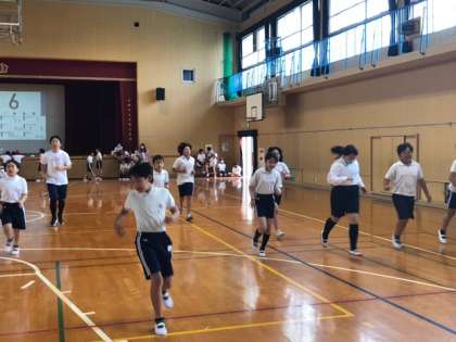 サブリーダーのリーダーの子どもたちが合同で体育館を走ります!20mシャトルランへの挑戦です!