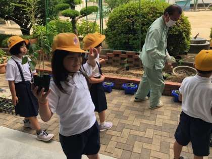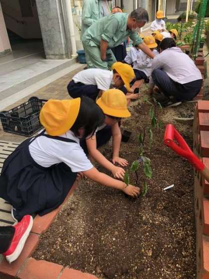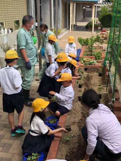 子どもたちはおくらとナスの植え付けにチャレンジしています。