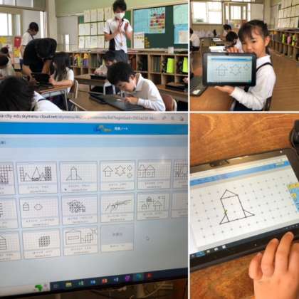 子どもたちはスカイメニューを使って、文字入れや作図など、先生の話をしっかりと聞いて作業に集中していました!