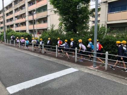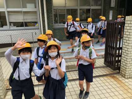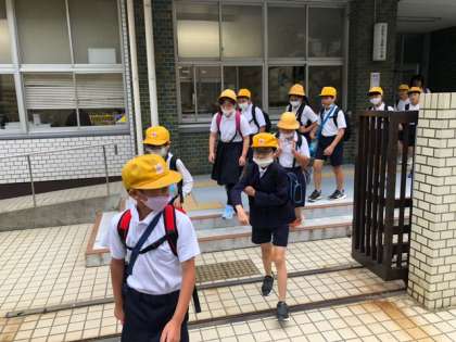 曇り空の下、子どもたちが元気に市立科学館に向けて出発しました!