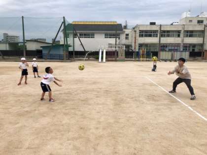 曇り空の心地よいお天気の中、子どもたちの白熱したドッジボール大会!第251回目(?)が始まりました!