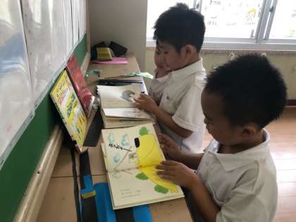 子どもたちは本が大好きです。教室にある様々な物語を使って、3つの力のひとつである「自分で考えて行動する力」を高めるための「言語活動」にチャレンジしています!