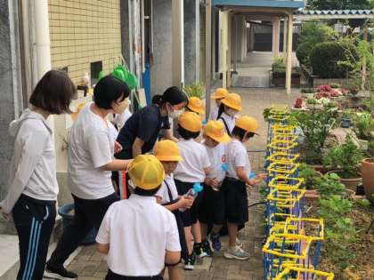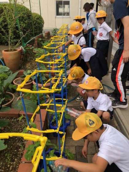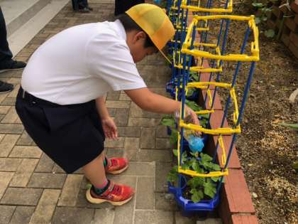 葉っぱの大きさの変化や茎の様子をしっかりと観察する子どもたちです!