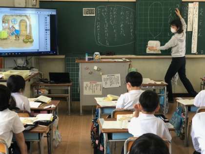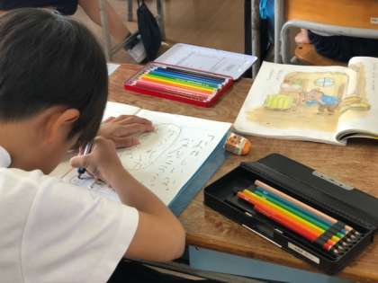 子どもたちはノートにプリントを貼って、自分の言葉を書き込んでいます。