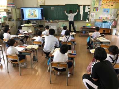 授業の終わり場自己評価です。顔のイラストで表現する子どもたち!
