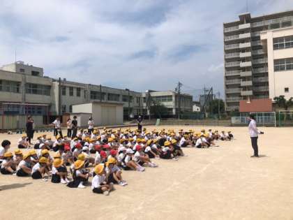 子どもたちがハンカチを口にあてて静かに且つ足早に運動場に避難しました。
