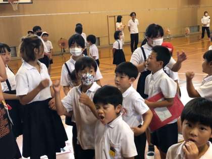 集会委員の子どもたちもはっきりと大きな声でゲームを進行することができました!ありがとうね!