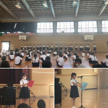 会の前に、3年生と6年生の子どもが「自分で考えて行動(表現)する風船」をふくらませ、振り返りメッセージを伝えました。2人とも堂々としてとてもかっこよかったです。