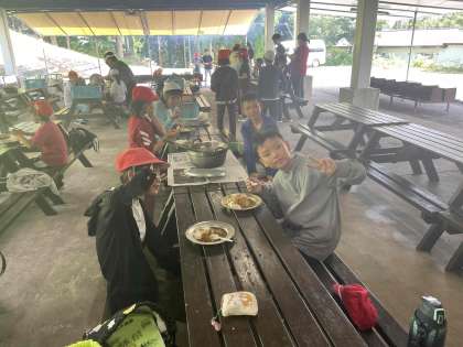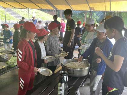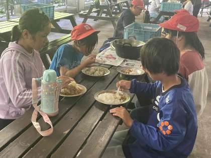 ご飯は用意していただきました。班のみんなで揃っていただきまーす!