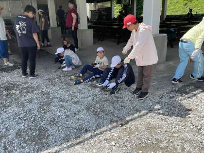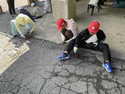 宿舎の方のチェックを受けて、色塗りをしていきます。みんな、黙々と作業しています。