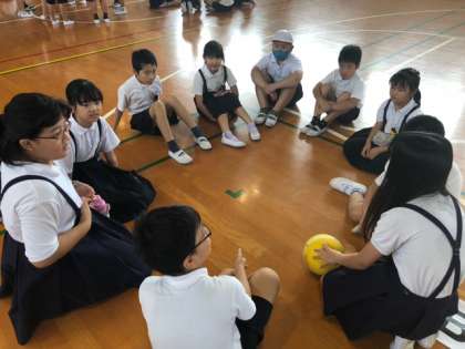 縦割り班グループの中で、名前を呼び合うことで、お互いを知り、お互いにあたたかい気持ちになるのがねらいです!