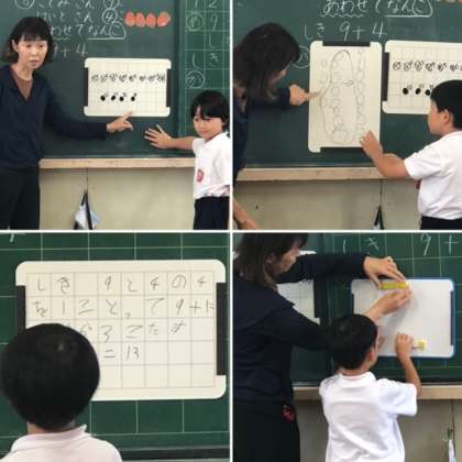 あわせていくつ!からたし算に気づきました。そこから、はじめて繰り上がりのたし算を考えます!