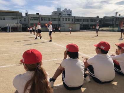 お兄さんお姉さんの体の動き!声の大きさ!移動のタイミング!などなどをしっかりと見つめて学ぶ姿!そして、人に見られることで、より自分を高めようとする姿!がとても素晴らしかったです!