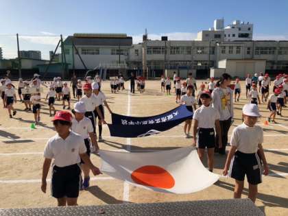秋晴れや空の下、すべての子どもたちと大人たちが集い、開会式の学びをつくりました。