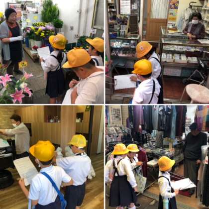 グループに分かれてインタビューがスタート!「写真を撮ってもいいですか?」が最初の問いかけです!どのお店でも心よく子どもたちを受け入れてくれました。