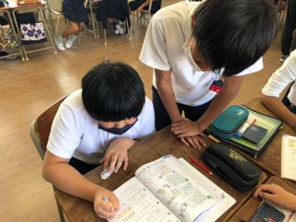 特にリーダーの算数の時間は、互いの考えを伝えあい、学び合う子どもたちの姿が見られます。