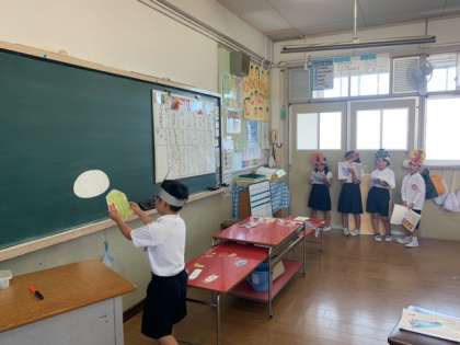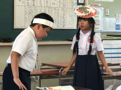 サラダでけんきの音読を劇化して発表する子どもたち!