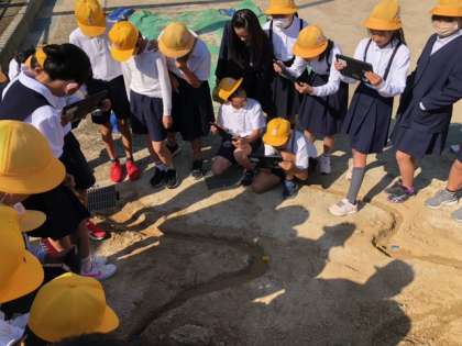 子どもたちはタブレットを使って動画を撮影して、その変化や様子を丁寧に見取りました。教室に帰ってからの学びに活かしています。
