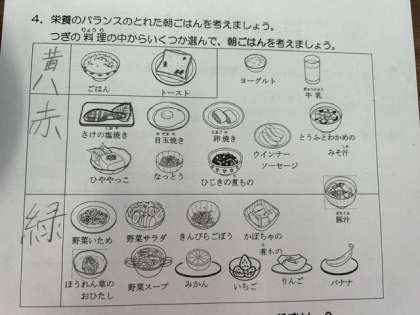 そして、自分のバランスよい朝ごはんをイメージして考えました。