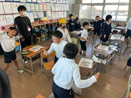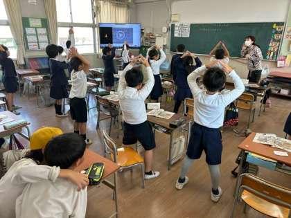 教室から元気な子どもたちの声が聞こえてきました。のぞいてみると、みんなが踊りの真っ最中!