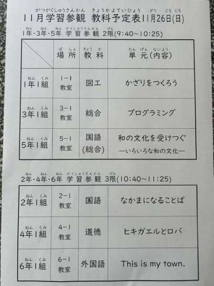 令和5年11月17日(金)来週は参観です!