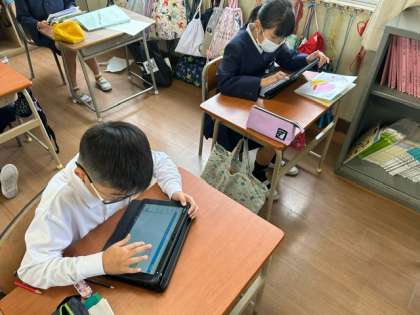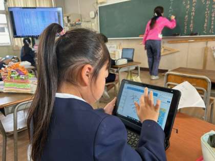 子どもたちはタブレットを使って、「どうした」について自分の考えをどんどん書き出していきます。