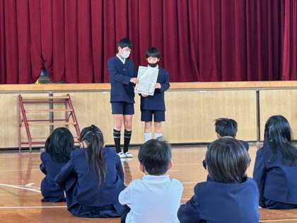 「かぜの予防」について伝えました。また、担当の先生からは、「2学期のまとめ」についてお話がありました。