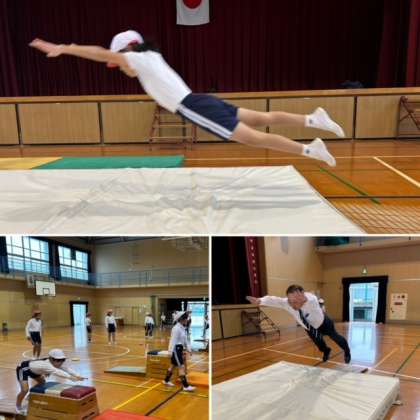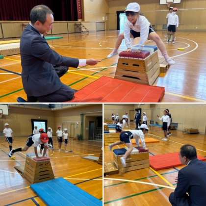 今日の学びは大人もともに学びました。とびばこにチャレンジする子どもたちです。
