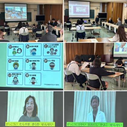 まずは、子どもたちの発表です。実際に給食を噛んで食べる活動を通して、咀嚼することについて調べたことを伝えました。みんな自信を持って堂々と発表できました!また、学校医先生からのビデオメッセージもいただきました。