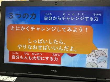 オンライン朝会の中、4年生の子どもたちに音声をONにして答えてもらいました。