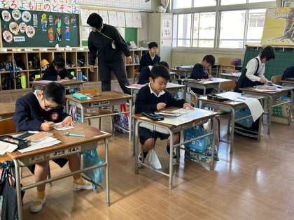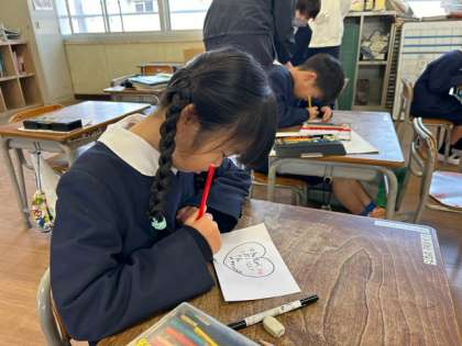 教室では、感謝の気持ちを込めてメッセージシートを作成しました。