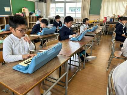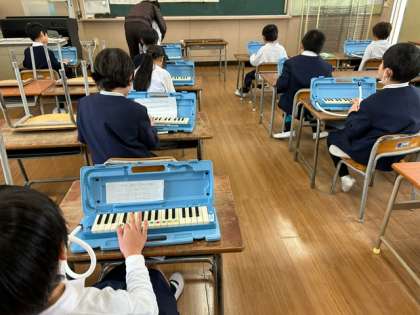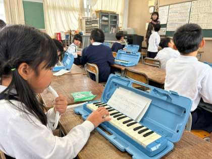 教室から素敵な音色が聴こえてきます。子どもたちがピアニカにチャレンジしていました!